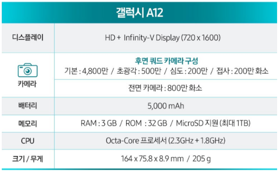 2. 갤럭시 A12 LTE 저가형모델 출시