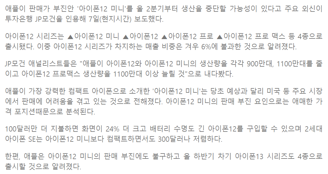 1. 아이폰12 미니 조기단종
