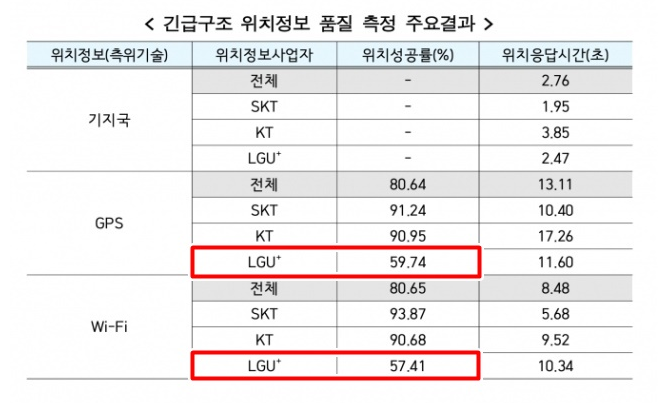 방송통신위원회에서는 긴급구조 위치정보 성공률을 매년 측정한다