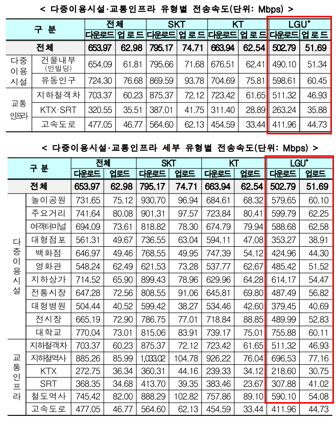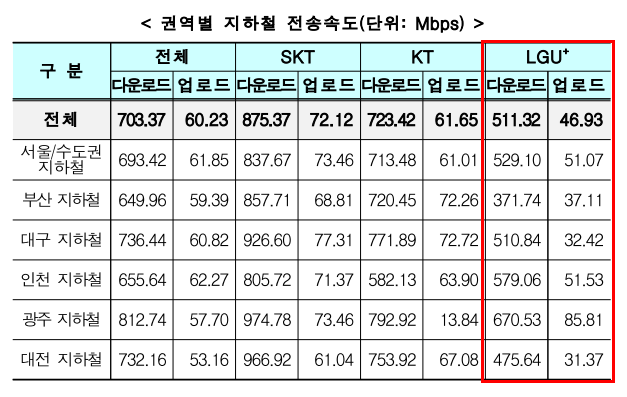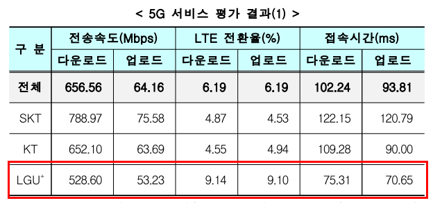 과학기술정보 통신부에는 통신사별 통신품질에 대해 측정한다면