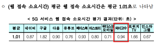 와이고수는 국가기관에서도 접속소요시간을 체크할만큼