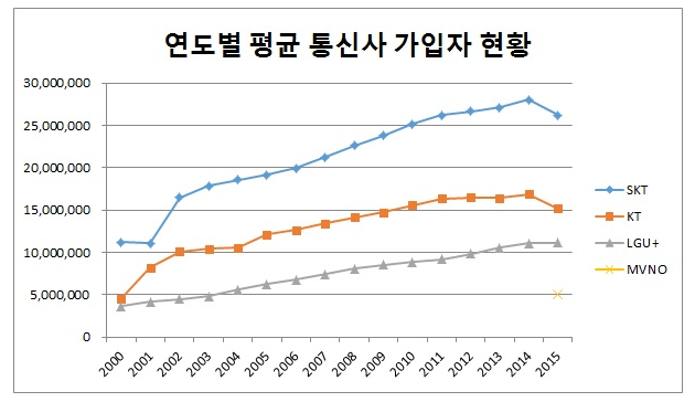 10년이 넘도록 가입자수 순위는 변동되지 않고있다